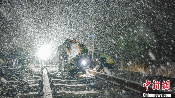 夜里,氣溫驟降,大雪紛飛。陳永祥手持道尺,穿梭在雪幕之中。他用雙手擦去鋼軌頂部的積雪,仔細測量線路的幾何偏差。每走幾步,他都會在軌枕上標注出軌距水平,為后續(xù)改道作業(yè)提供精準的調(diào)整數(shù)值。“我來核對尺寸,王長煜負責螺栓松緊,李晨現(xiàn)場防護?!彪S著作業(yè)命令的下達,陳永祥的話語在冷風中格外堅定。他們深知,每一次作業(yè)都關(guān)乎列車的安全運行,容不得半點馬虎。