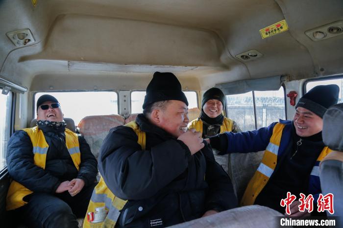 1月22日,中國北方小年,青藏集團(tuán)公司德令哈工務(wù)段關(guān)角隧道工區(qū)“00后”職工郝斌(前)和工友們合影。中新社記者 馬銘言 攝