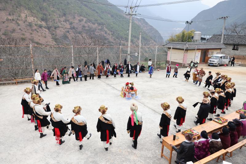 春節(jié)期間,維西縣塔城鎮(zhèn)其宗村止扎村民小組組織了豐富的新春慶?;顒?,村民們身著民族盛裝,齊聚一堂,手拉手跳起傳統(tǒng)鍋莊舞,傳遞著人們對新一年的美好祝愿,處處洋溢著濃郁的新年氣息。圖為村民手拉手跳鍋莊舞慶賀春節(jié)。