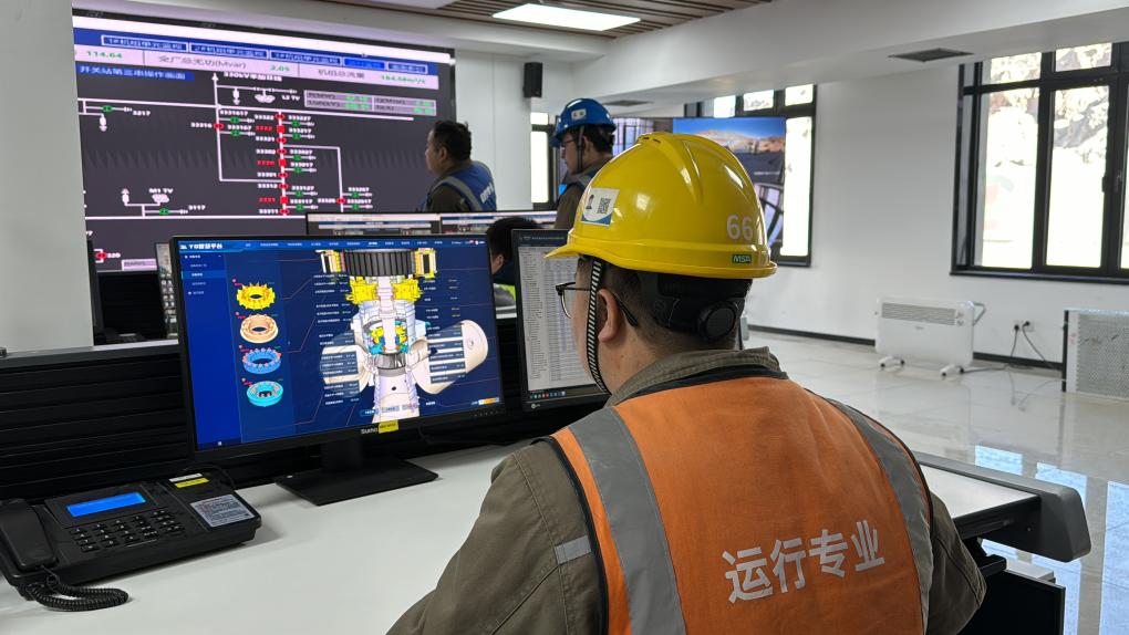 1月16日,羊曲水電站工作人員正在數(shù)字孿生智慧平臺查看水電站運行情況。新華社記者 解統(tǒng)強 攝
