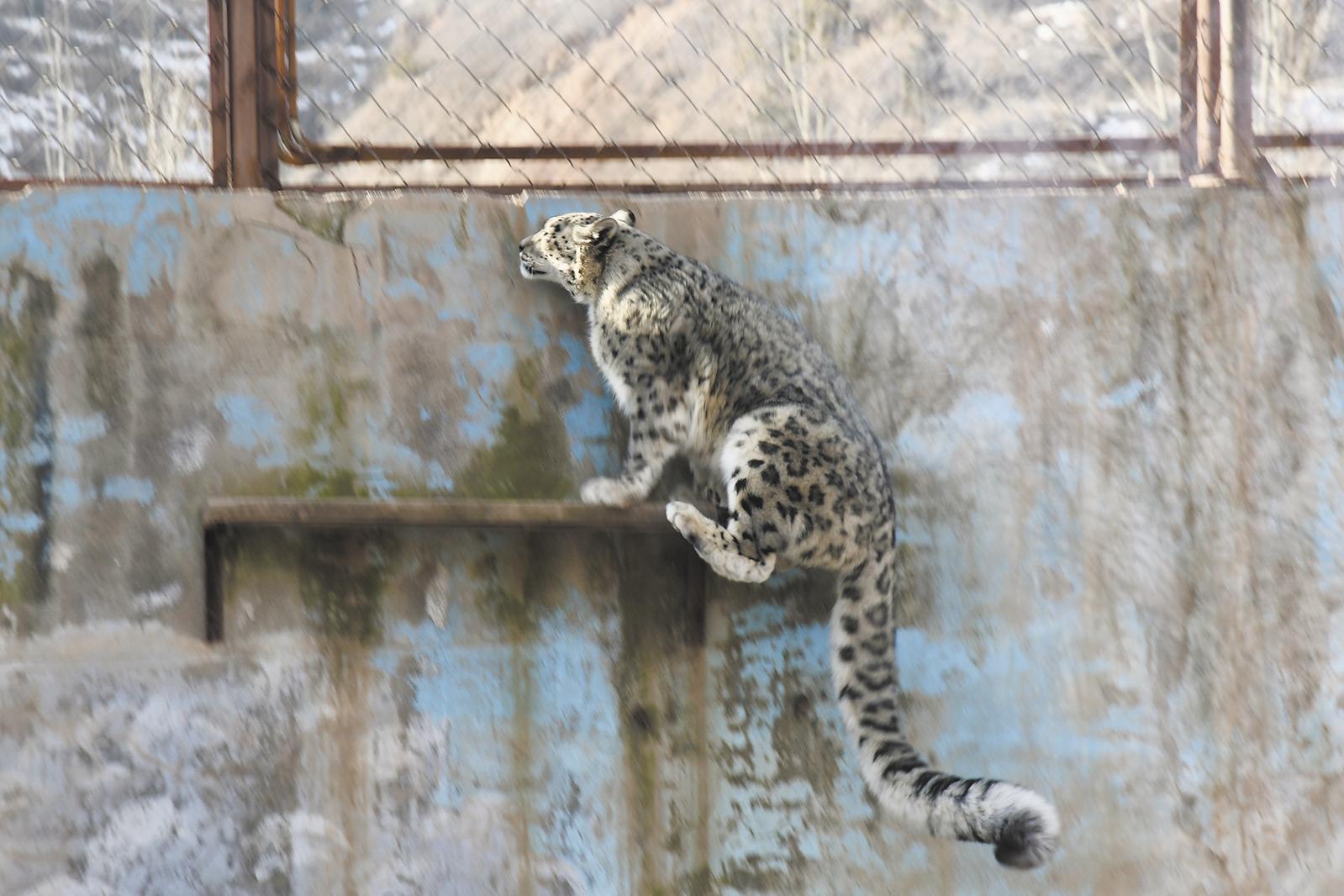 雪豹凌空一躍