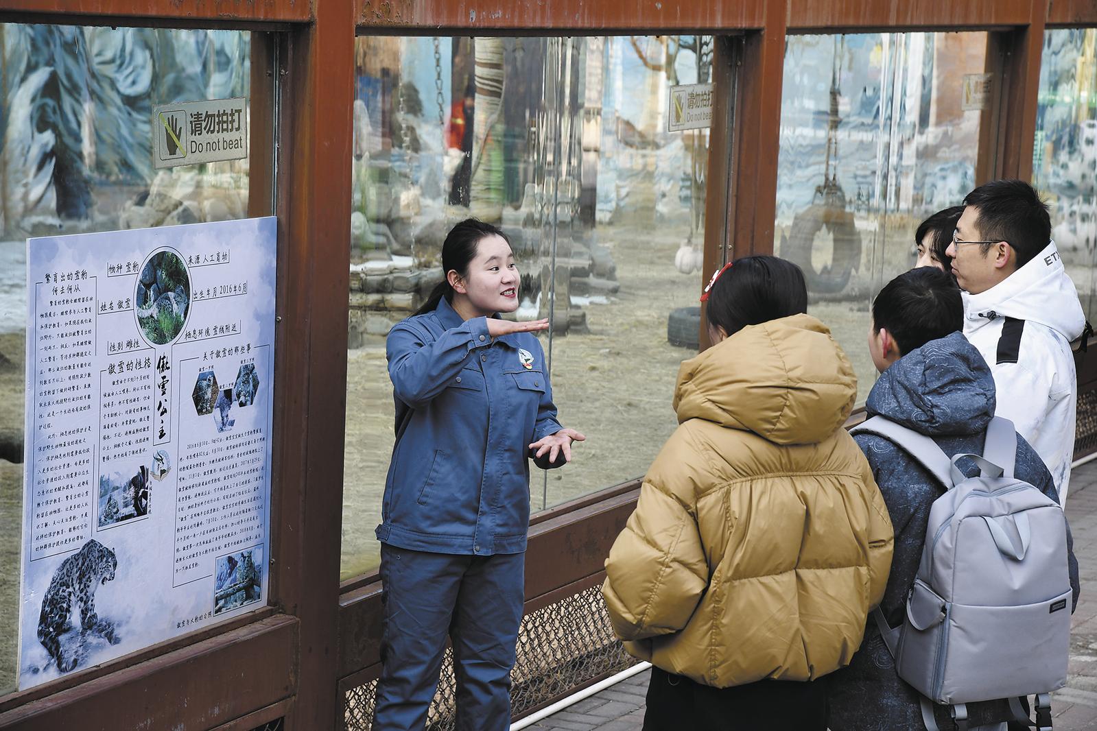 “雪豹之都”,獨(dú)具魅力的生態(tài)名片。雪豹已成為西寧旅游新亮點(diǎn),每天都有大量游客來到西寧,只為一睹“雪山之王”神秘又可愛的面龐。作為雪豹的“代言人”,王亞萍每天滿懷熱情地向游客講述著雪豹的傳奇故事,分享著雪豹成長的每一個(gè)瞬間。“雪豹們被養(yǎng)得胖乎乎的,而且每一只都有自己的專屬愛稱,它們一定獲得了很多的愛。”游客宋思文向記者說。