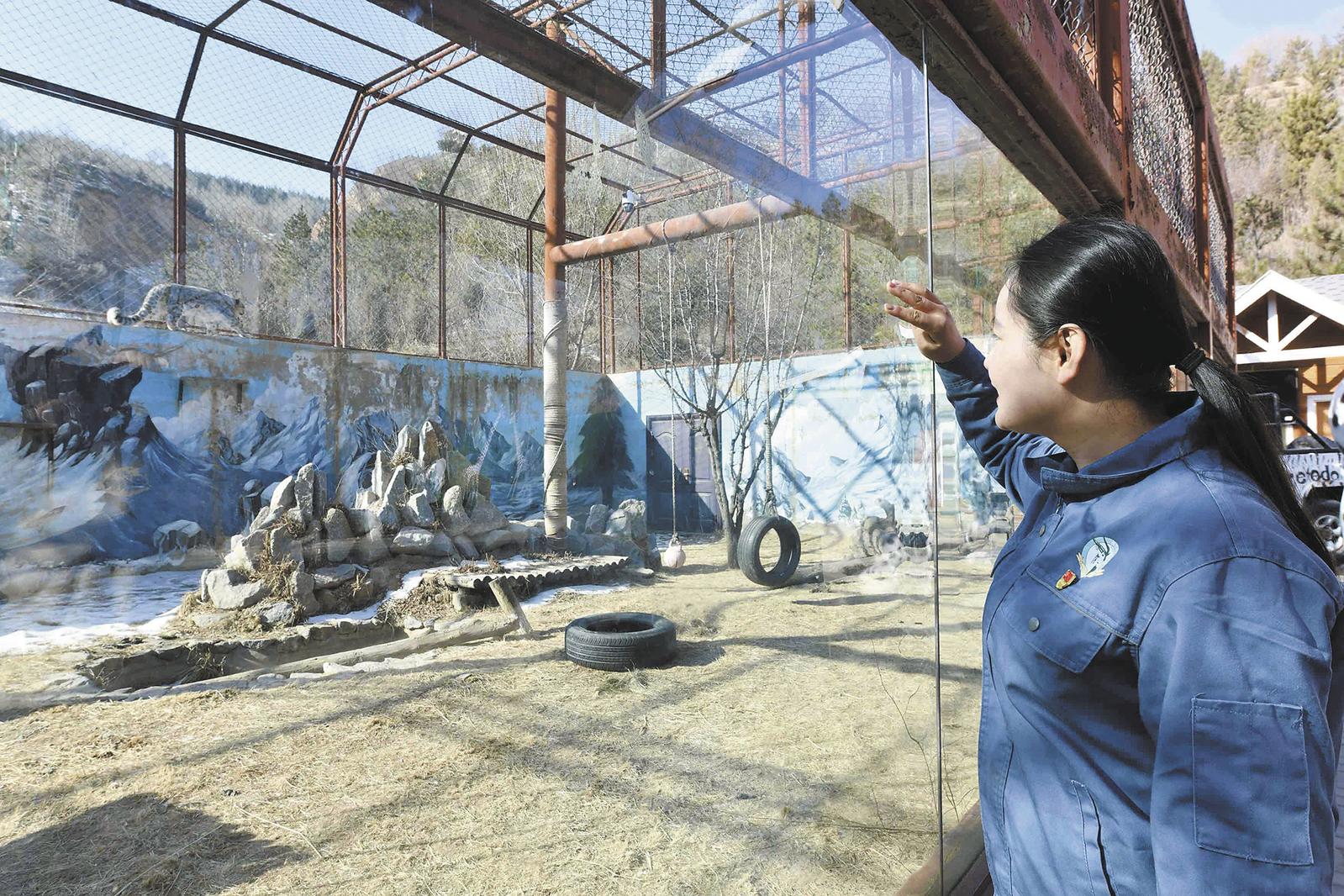 王亞萍的“特別伙伴”雪豹傲雪,正以一種雪山之王獨(dú)有的姿態(tài)悠閑地踱步,金黃眼眸在晨光中閃爍,猶如巡視著廣袤領(lǐng)地的王者。有著7年雪豹“奶媽”經(jīng)歷的王亞萍隔著玻璃仔細(xì)觀察著傲雪的活動(dòng)。“這段時(shí)間傲雪進(jìn)入了發(fā)情期,情緒和飲食不是很好,我要多陪陪它,觀察它的情況?!蓖鮼喥几糁Ac傲雪并肩而行,兩者間的默契與情感無須多言。