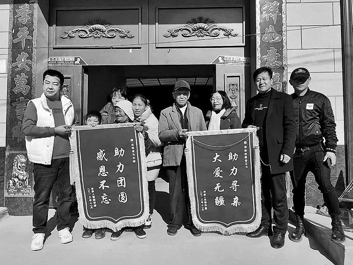 團(tuán)圓儀式上,尋親家庭為志愿者贈送錦旗。