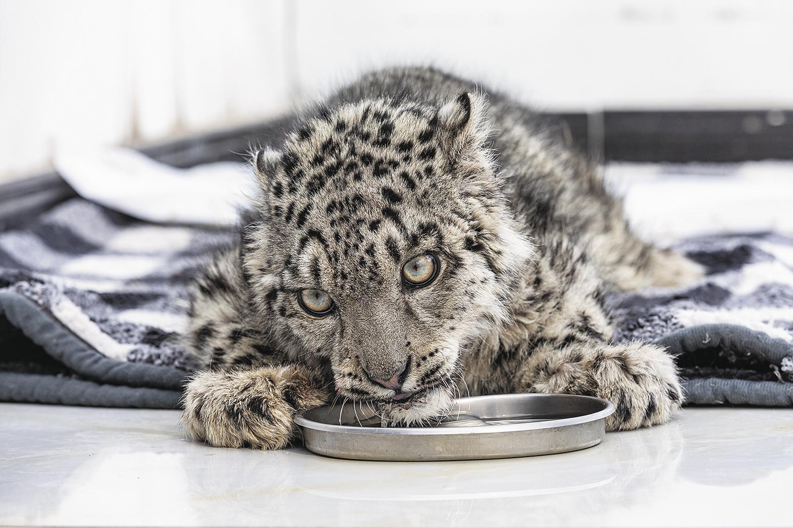 受傷小雪豹“凌小蟄”。青海野生動物救護繁育中心供圖