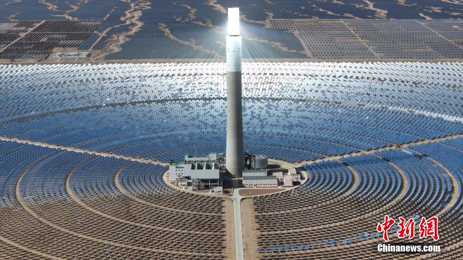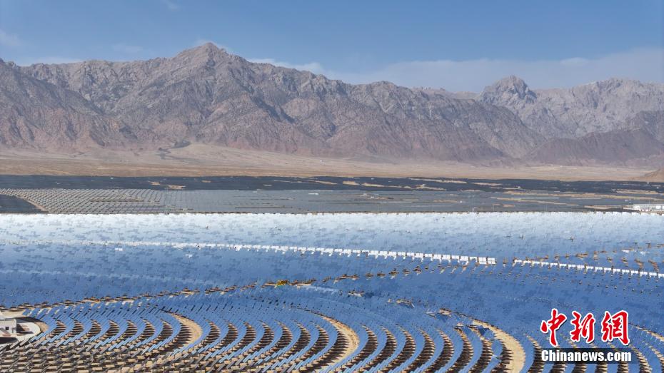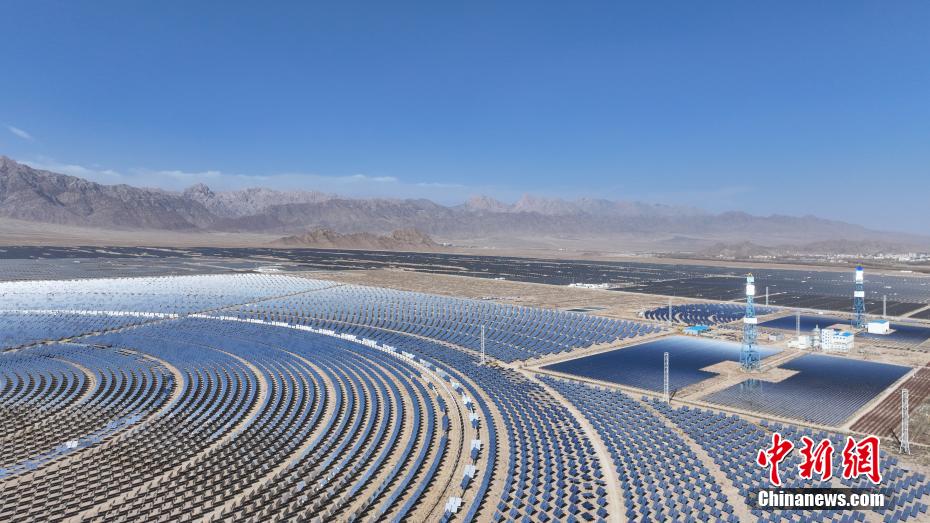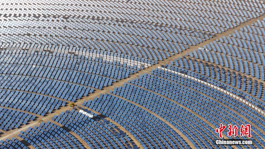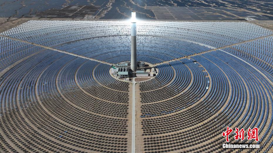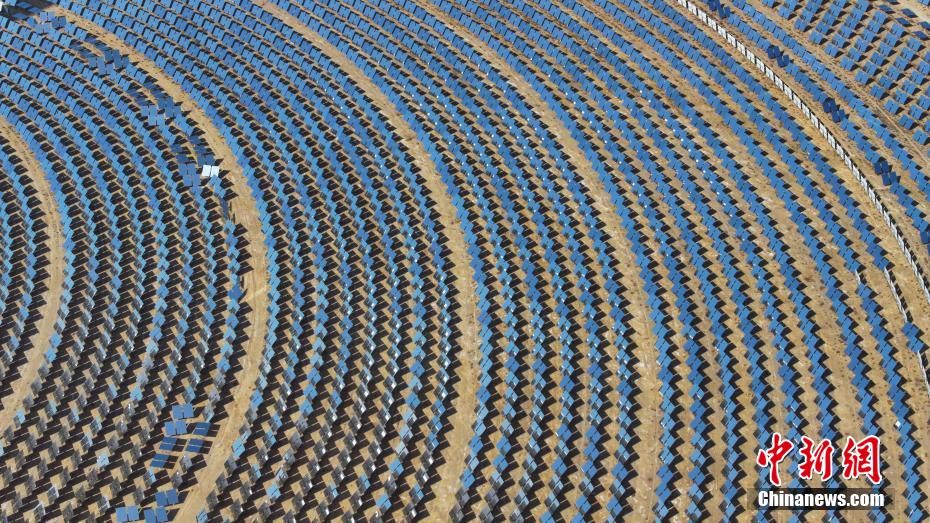 4月15日,航拍位于青海省海西蒙古族藏族自治州德令哈市境內(nèi)的青海中控50MW光熱電站,如戈壁灘上的“藍(lán)色海洋”。該光熱電站是中國首批光熱發(fā)電示范項(xiàng)目之一,也是全球首個(gè)年發(fā)電量超過年設(shè)計(jì)發(fā)電量的塔式熔鹽儲(chǔ)能光熱電站。裝機(jī)容量達(dá)50MW,鏡場采光面積達(dá)54.27萬平方米,配置有7小時(shí)熔鹽儲(chǔ)能系統(tǒng),每年可節(jié)約標(biāo)準(zhǔn)煤約4.8萬噸,減排二氧化碳?xì)怏w約12.4萬噸。(無人機(jī)照片)中新社記者 馬銘言 攝