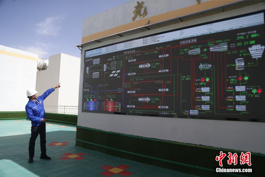 4月15日,在青海省海西蒙古族藏族自治州德令哈市,青海中控50MW光熱電站總工程師樊玉華介紹項(xiàng)目實(shí)時(shí)數(shù)據(jù)。該光熱電站是中國首批光熱發(fā)電示范項(xiàng)目之一,也是全球首個(gè)年發(fā)電量超過年設(shè)計(jì)發(fā)電量的塔式熔鹽儲(chǔ)能光熱電站。裝機(jī)容量達(dá)50MW,鏡場采光面積達(dá)54.27萬平方米,配置有7小時(shí)熔鹽儲(chǔ)能系統(tǒng),每年可節(jié)約標(biāo)準(zhǔn)煤約4.8萬噸,減排二氧化碳?xì)怏w約12.4萬噸。中新社記者 馬銘言 攝