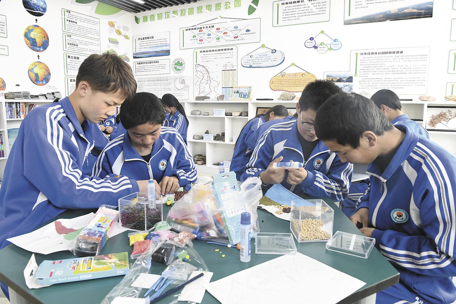 學(xué)生正在開展地質(zhì)科普手工。才貢加 張多鈞 攝