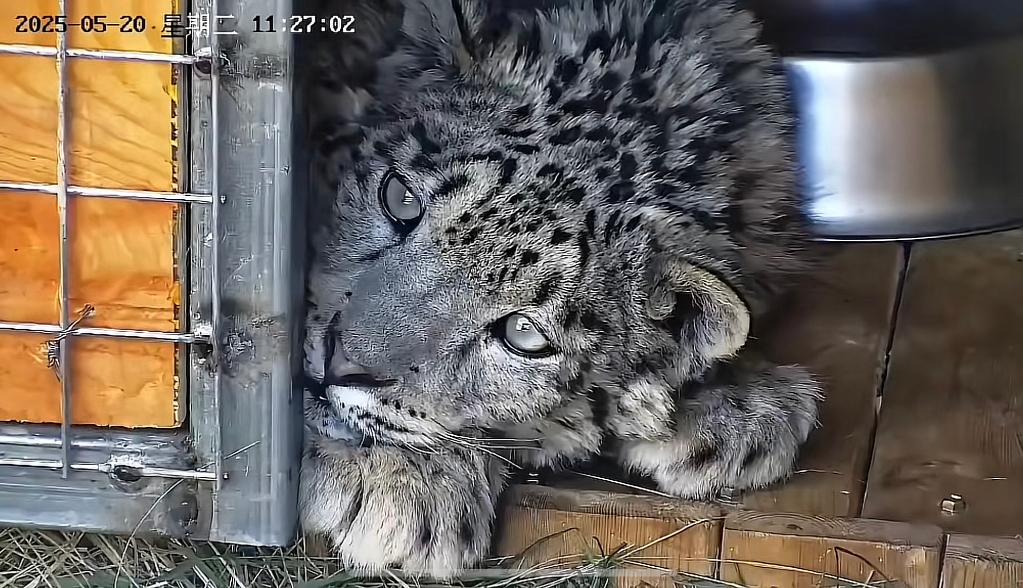 經(jīng)過緊張有序的治療,這只小雪豹的身體有所好轉。3月8日,“凌小蟄”第一次抬起了頭,望向外面的世界。