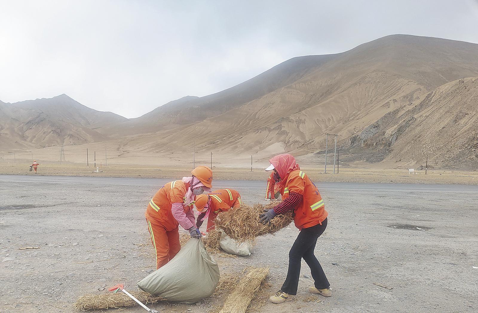 沿著蜿蜒的公路向南,車窗外閃過(guò)昆侖山的皚皚雪峰,車內(nèi)卻彌漫著專注的氣息。只要發(fā)現(xiàn)路邊有零星的塑料瓶或包裝袋,司機(jī)便會(huì)立即減速,橙色身影們便迅速躍下車去。彎腰、撿拾、起身,這套動(dòng)作每天要重復(fù)成百上千次,從海拔2800米的格爾木到4768米的昆侖山口,近兩百公里的路程,他們走走停停,用腳步丈量著每一寸土地。