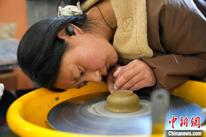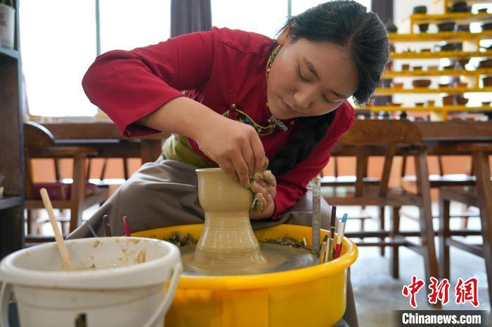 圖為藏陶工藝——拉坯。中新社記者 安源 攝