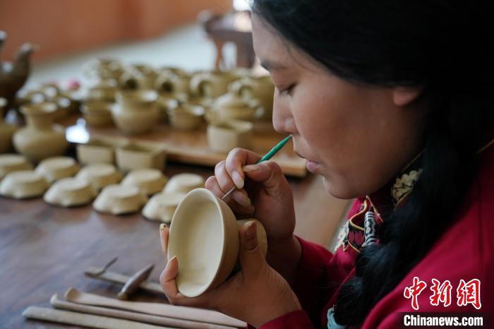 圖為藏陶工藝——雕花。中新社記者 安源 攝