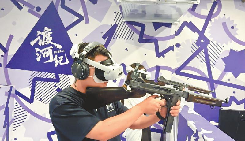記者體驗(yàn)“飛奪瀘定橋全感互動(dòng)空間”項(xiàng)目。周寶攝