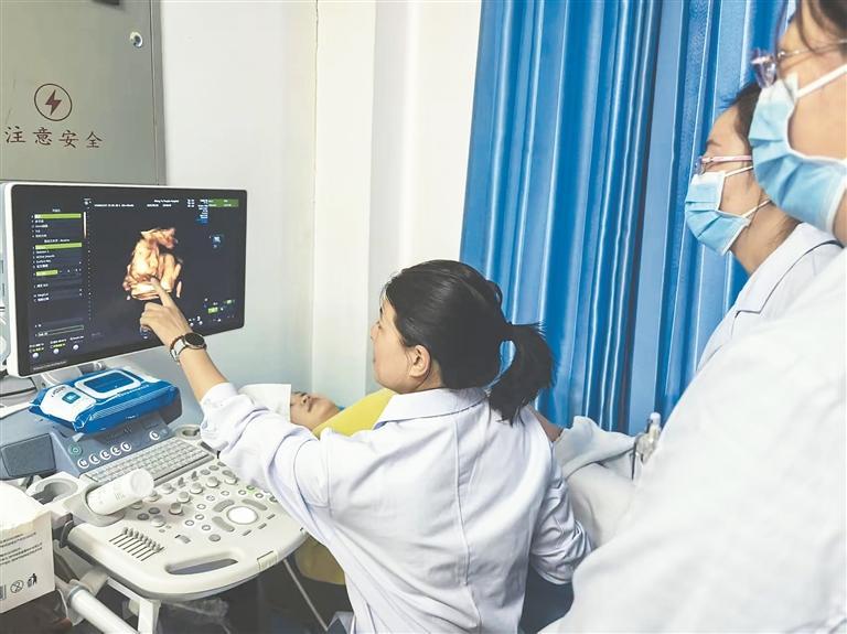 朱悠悠醫(yī)師為茫崖醫(yī)務人員講解三維超聲下胎兒面部結構細節(jié),助力提升診斷精準度。冉志敏 攝