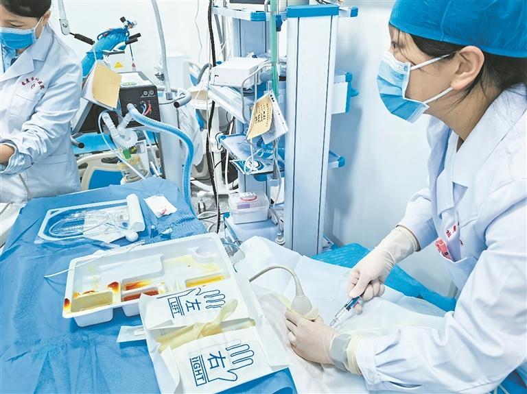 浙江臺州援青醫(yī)生徐盼盼正全神貫注為患者穿刺。冉志敏 攝