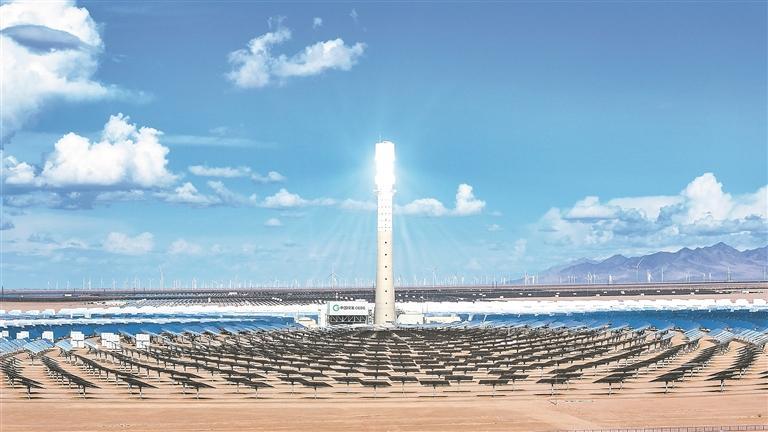 中國(guó)綠發(fā)青海分公司海西州多能互補(bǔ)集成優(yōu)化國(guó)家示范工程內(nèi)熱熔鹽發(fā)電場(chǎng)。