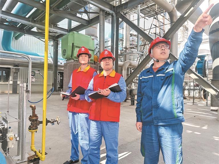 工作人員在中國(guó)綠發(fā)青海分公司海西州多能互補(bǔ)集成優(yōu)化國(guó)家示范工程內(nèi)走訪電力外送情況。張鵬 攝