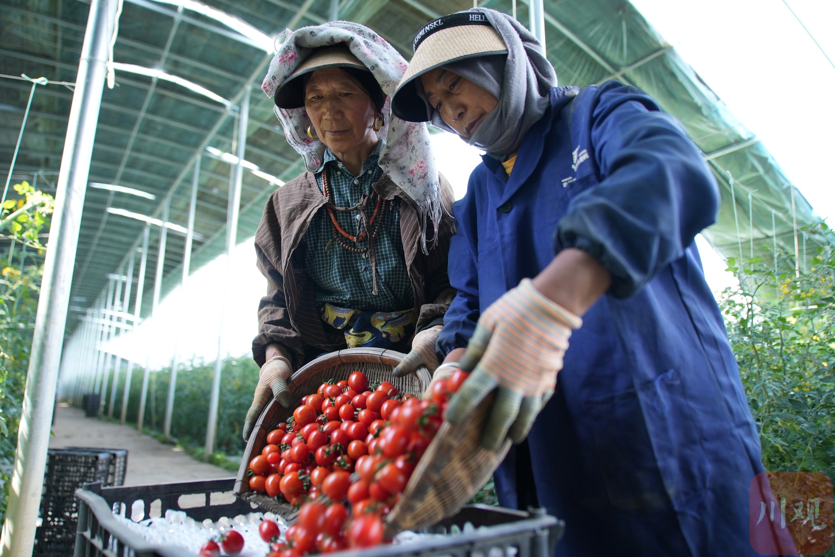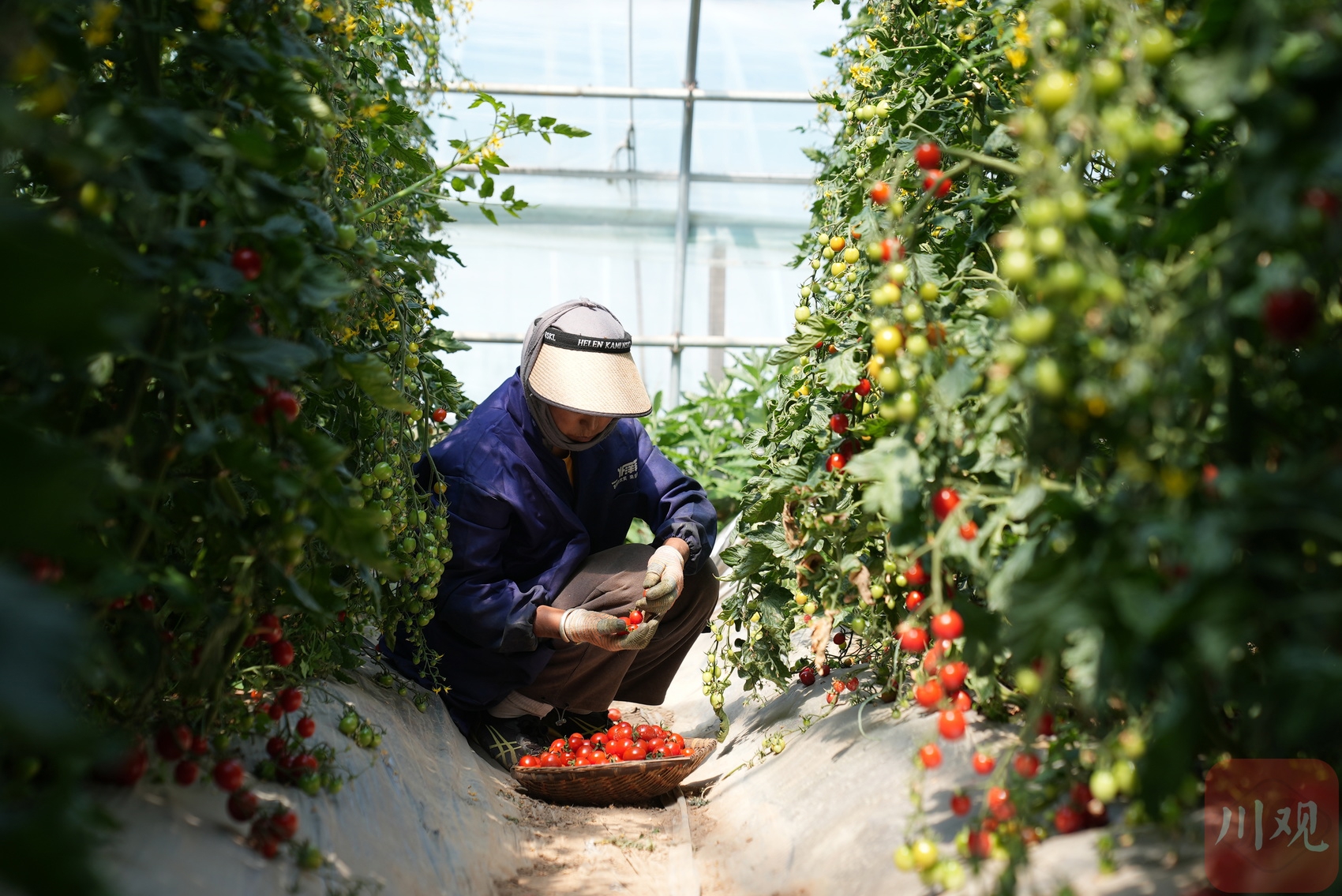 8月4日,松潘高原現(xiàn)代農(nóng)業(yè)產(chǎn)業(yè)園區(qū)內(nèi),豐收的高原水果小番茄進入采摘期。