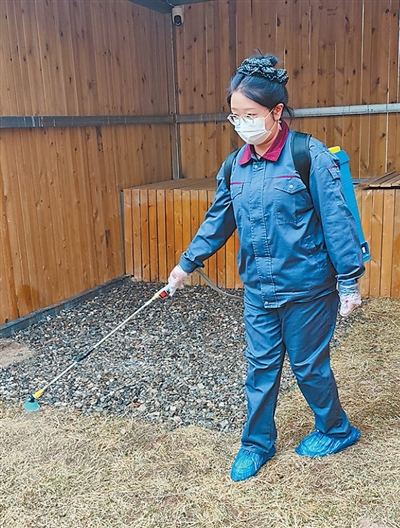 劉雪松為動(dòng)物康復(fù)室進(jìn)行消殺作業(yè)。以上圖片均為受訪者提供