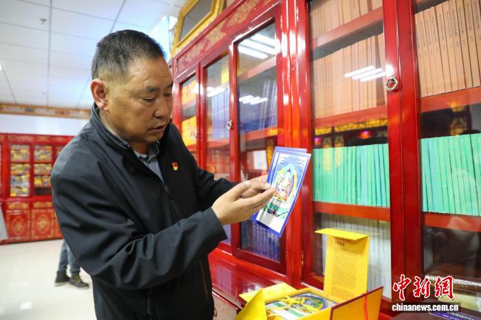 圖為果洛州藏醫(yī)院黨委書記卓瑪才旦介紹醫(yī)院整理收藏的藏醫(yī)藥古籍。馬銘言 攝