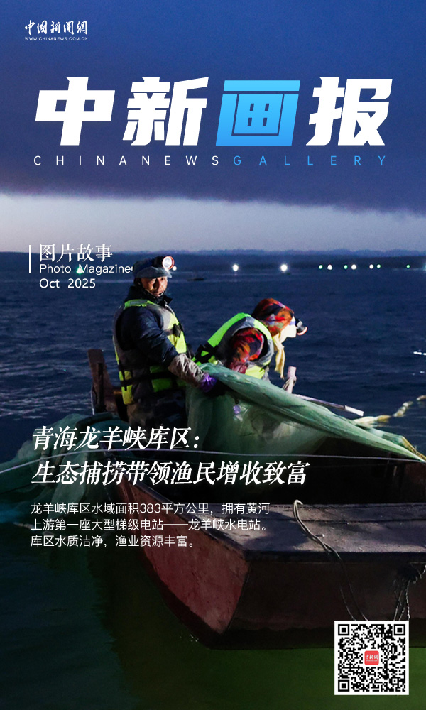 10月14日清晨,青海省海南藏族自治州的龍羊峽庫區(qū),漁民借用燈光誘捕肉質(zhì)細(xì)嫩的池沼公魚。龍羊峽庫區(qū)水域面積383平方公里,擁有黃河上游第一座大型梯級電站——龍羊峽水電站。庫區(qū)水質(zhì)潔凈,漁業(yè)資源豐富,每年8月20日至11月20日是池沼公魚捕撈期,僅這一項(xiàng)收入就能給每戶漁民家庭帶來近10萬元(人民幣)的收入。