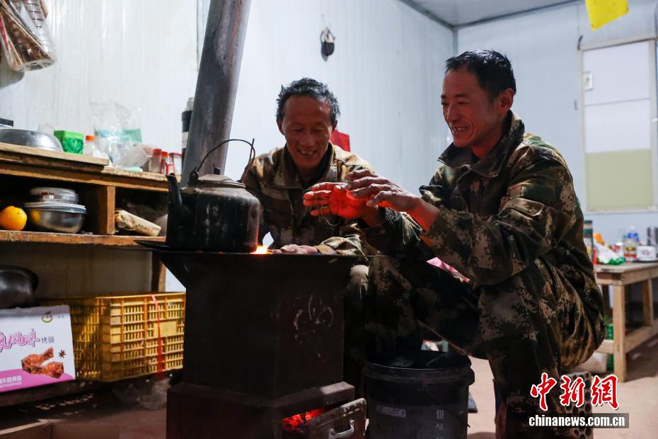 圖為漁民在屋內(nèi)烤火取暖。中新社記者 薛蒂 攝