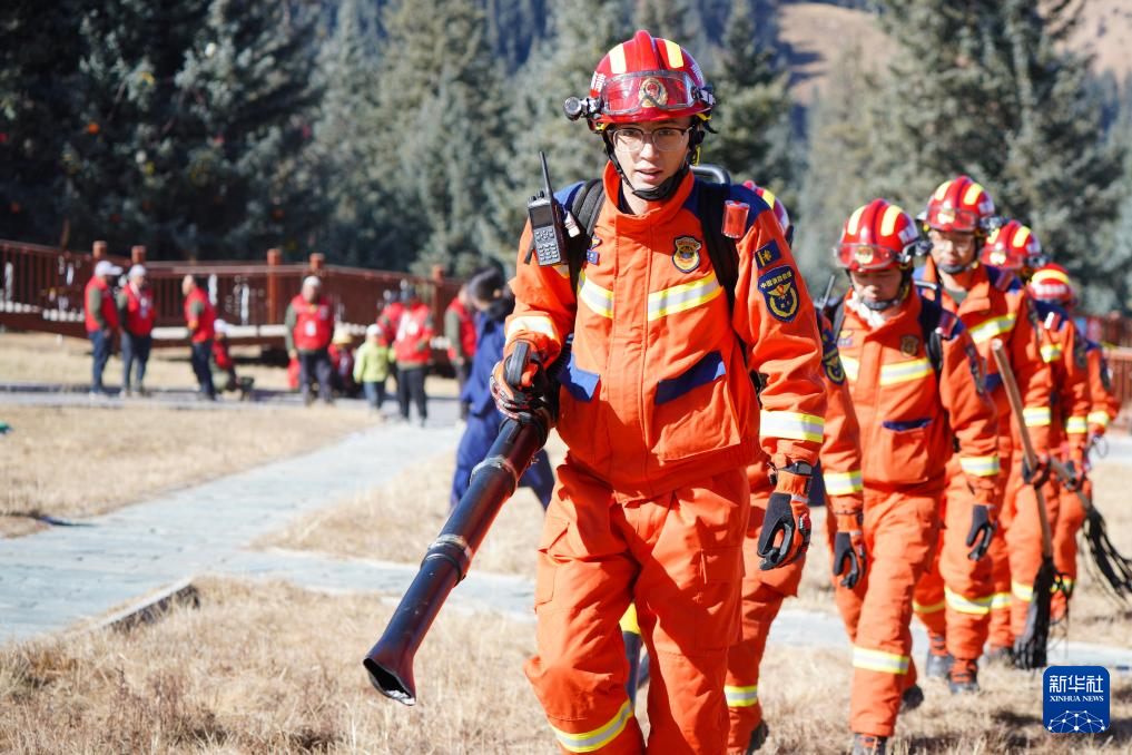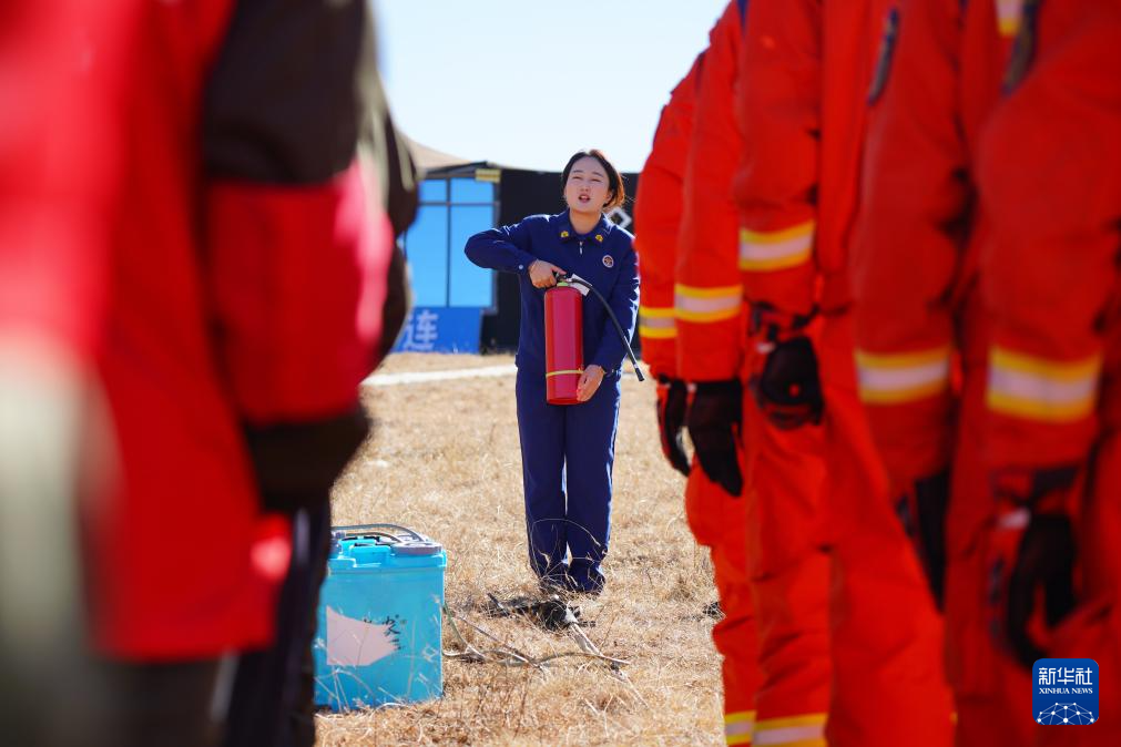 11月8日,在青海省海北藏族自治州祁連縣阿咪東索林區(qū),祁連縣消防救援大隊(duì)消防宣傳員為當(dāng)?shù)刈o(hù)林員進(jìn)行技能培訓(xùn)。新華社記者 齊芷玥 攝