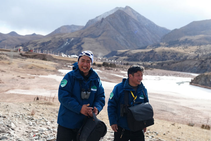 指著遠(yuǎn)處一處洼地,桑求曲朋說:“約古宗列是水源地,10公里外還有牧民放牧,如果沒有其他任務(wù),我們基本每周都要來看一看?!?/p>