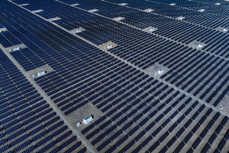 這是在青海省海南藏族自治州共和縣塔拉灘綠色產(chǎn)業(yè)發(fā)展園區(qū)拍攝的光伏電站。(資料圖)新華社記者 張龍 攝