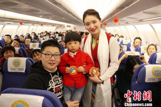 “這是我第二次乘坐西藏航空的春節(jié)主題航班,去年這個(gè)時(shí)候是在飛機(jī)上包餃子,他們每次春節(jié)的活動(dòng)都讓我記憶深刻?!背俗鞑睾娇蘸桨嗟目迪壬闷鹪?huà)機(jī)在機(jī)艙里說(shuō)。