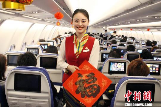 乘務(wù)員為旅客送上了紅棗茶和“福”字,在三萬(wàn)米高空溫暖旅客回家路,其樂(lè)融融的客艙內(nèi)像是一個(gè)溫暖的大家庭!