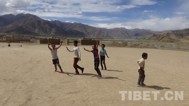 照片里個子最高的就是夏雜小小足球隊的隊長——貢嘎扎西,本以為他會是足球隊的前鋒,誰知他卻是防守的中堅力量——司職后衛(wèi)。今天他可解圍了不少威脅球。前排中間這個剛剛掉了右邊門牙的少年名叫多吉普拉,“別看我牙都沒長齊,但我是前鋒”。在剛剛結(jié)束的這場夏雜村足球賽中獨中兩元,他就是夏雜村足球隊未來的“C羅”。這里——4100米海拔的“魔鬼主場”就是他們的主場。