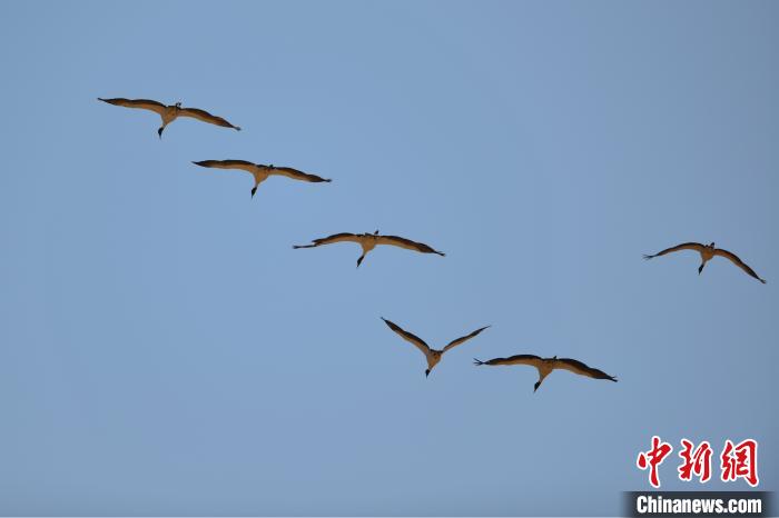 記者本月15日至16日從西藏拉薩市林周縣澎波河流域觀察了解到,中國國家一級保護動物黑頸鶴已大量遷徙至該區(qū)域越冬。