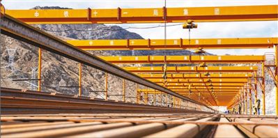 4月23日,拉林鐵路今年復(fù)工以來的首列長(zhǎng)鋼軌進(jìn)入?yún)f(xié)榮鋪架基地。袁泉 丁慶濱 攝