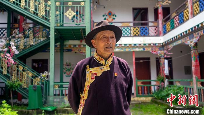 7月18日,林芝魯朗鎮(zhèn)扎西崗村的平措大叔在自家旅館前等待旅客入住。平措1998年開始為自駕、騎行國道318線的游客提供旅游服務(wù)。 中新社記者 江飛波 攝