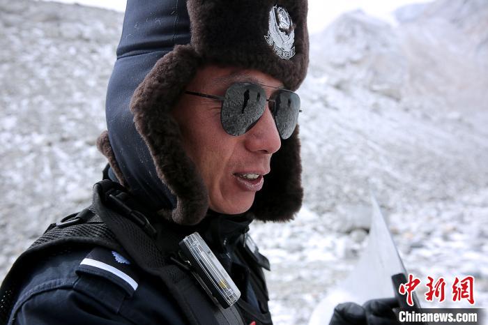 珠峰邊境派出所民警們?cè)谥榉搴诵膮^(qū)域開展巡邏。彭維熙 攝