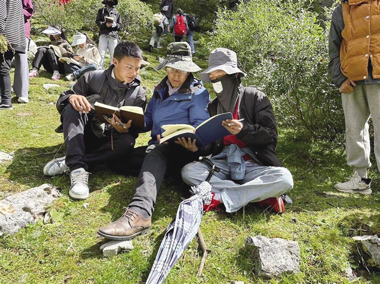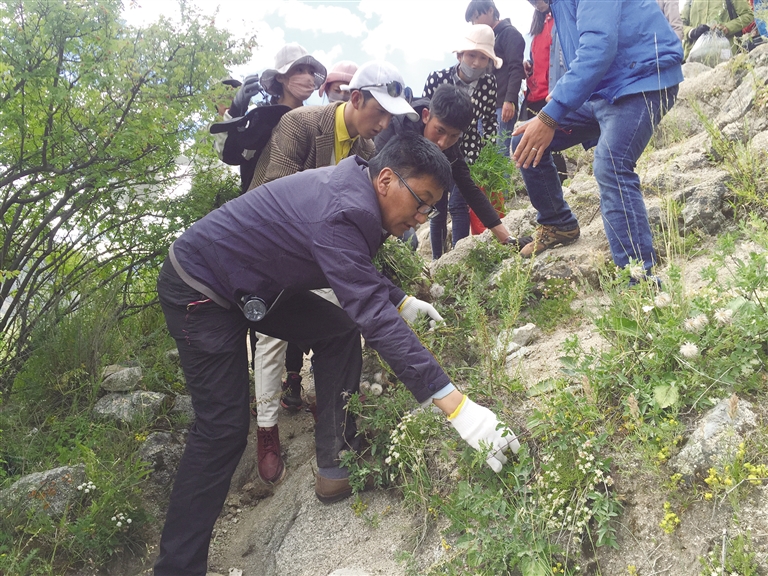 洛桑尼瑪帶領學生上山采藥識藥。圖由洛桑尼瑪提供