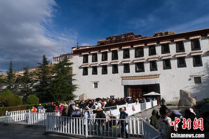 圖為“雙節(jié)”期間,游客路過布達拉宮。江飛波 攝