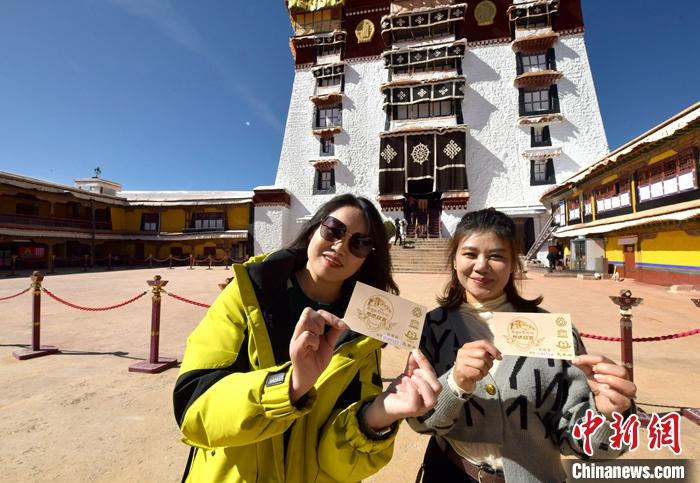 11月1日,西藏拉薩,來(lái)自四川瀘州的游客展示布達(dá)拉宮參觀券。中新社記者 李林 攝
