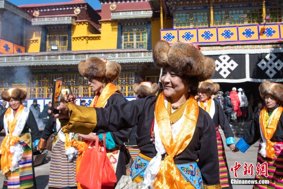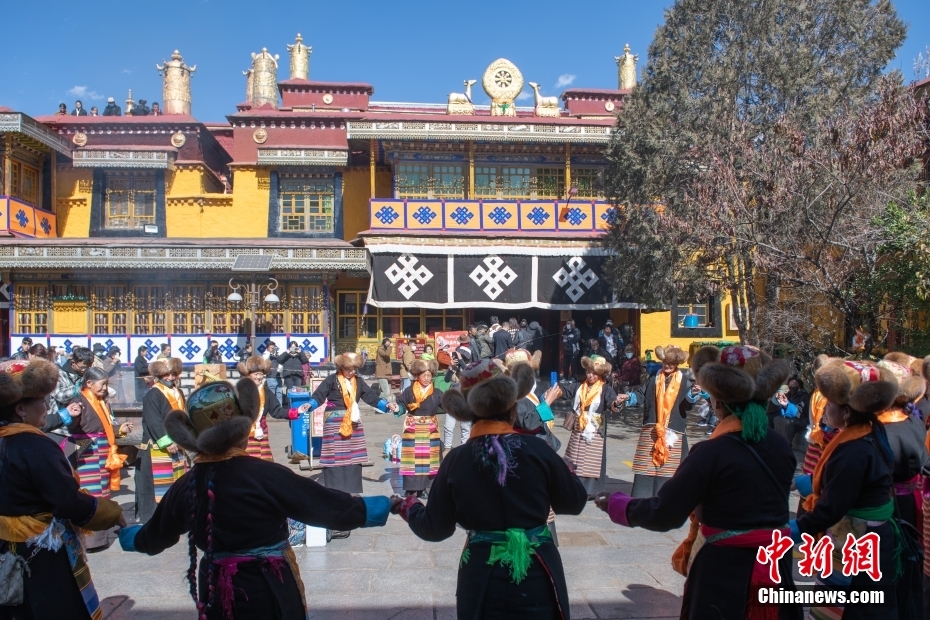 11月15日,西藏拉薩,拉薩婦女在扎基寺跳起傳統(tǒng)舞蹈,迎“仙女節(jié)”?!跋膳?jié)”即吉祥天母節(jié),藏語稱“白來日追”。相傳藏傳佛教最高護法神之一班丹拉姆的女兒白拉姆,不顧母親的反對與赤尊贊私定終身,班丹拉姆一怒之下將赤尊贊趕到拉薩河南岸,規(guī)定二人僅每年的藏歷十月十五日相見。中新社記者 貢嘎來松 攝
