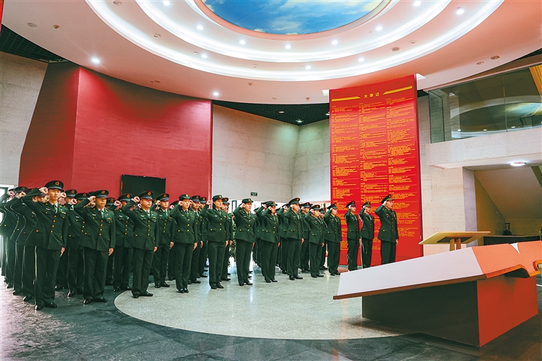 圖為拉薩警備區(qū)某團組織黨員參觀西藏軍區(qū)軍史陳列館,重溫入黨誓詞。記者 唐斌 通訊員 何琪 攝