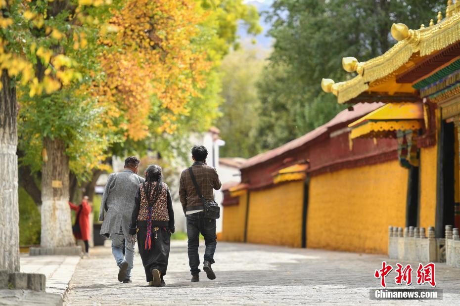 金秋十月,拉薩市西郊羅布林卡秋意正濃,景色宜人。眾多市民、游客紛紛前往打卡。羅布林卡藏語意為“寶貝園林”,始建于公元十八世紀40年代,是典型的藏式風格園林,也是西藏的世界文化遺產之一,有格桑林卡、措吉頗章、金色頗章等宮殿建筑群。這里秋景如畫,成為人們感受自然與歷史文化的好去處。圖為10月21日,游客在羅布林卡內參觀游覽。貢嘎來松 攝