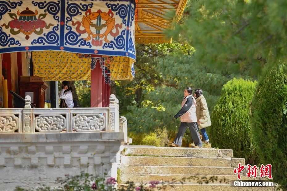 金秋十月,拉薩市西郊羅布林卡秋意正濃,景色宜人。眾多市民、游客紛紛前往打卡。羅布林卡藏語意為“寶貝園林”,始建于公元十八世紀40年代,是典型的藏式風格園林,也是西藏的世界文化遺產之一,有格桑林卡、措吉頗章、金色頗章等宮殿建筑群。這里秋景如畫,成為人們感受自然與歷史文化的好去處。圖為10月21日,民眾在羅布林卡內參觀游覽。貢嘎來松 攝
