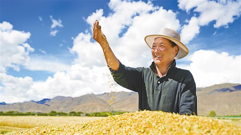 同樣的“豐”景,在日喀則市江孜縣江熱鄉(xiāng)江熱村也在上演,“我家有52畝地,留足口糧后光靠地的收入一年有三萬元左右,與去年相比,今年的產(chǎn)量還要高一些?!苯瓱岽宕迕窀裆Uf,“過去種青稞,大部分是為了自給自足留足口糧,現(xiàn)在種出來的青稞,能夠制成青稞酒、青稞餅干、青稞酸奶等產(chǎn)品,產(chǎn)品和銷售渠道寬了,農(nóng)民們的收入自然也就高了?!?/p>