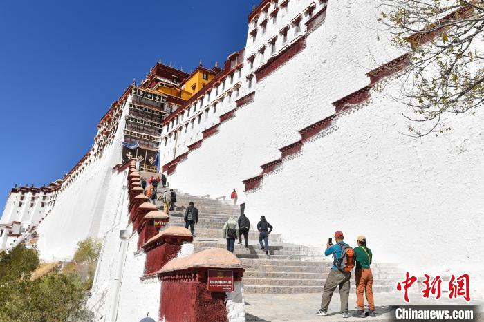 近日,西藏布達拉宮完成粉刷,呈現(xiàn)出別樣的美。粉刷后的宮墻在陽光映照下,與藍天白云相襯,顯得莊嚴肅穆。布達拉宮的粉刷,不僅是為了讓其外觀更加美觀,更重要的是能對墻體建筑起到保護作用,增強其防雨功能。按照慣例,布達拉宮每年藏歷九月左右開始粉刷,并且要在藏歷九月二十二日“降神節(jié)”之前完成,期間有眾多民眾,游客積極參與。布達拉宮作為世界文化遺產(chǎn),是眾多進藏游客必去的“打卡點”。圖為11月8日,游客參觀布達拉宮。中新社記者 貢確 攝