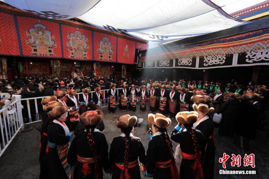 12月15日即藏歷十月十五日是藏族傳統(tǒng)的節(jié)日“白來日追”,俗稱“仙女節(jié)”、“白拉姆節(jié)”等。相傳藏傳佛教最高護法神之一班丹拉姆的女兒白拉姆,不顧母親的反對與赤尊贊私定終身,班丹拉姆一怒之下將赤尊贊趕到拉薩河南岸,規(guī)定二人僅每年的藏歷十月十五日相見。圖為身著民族服裝的信眾在大昭寺內(nèi)載歌載舞。