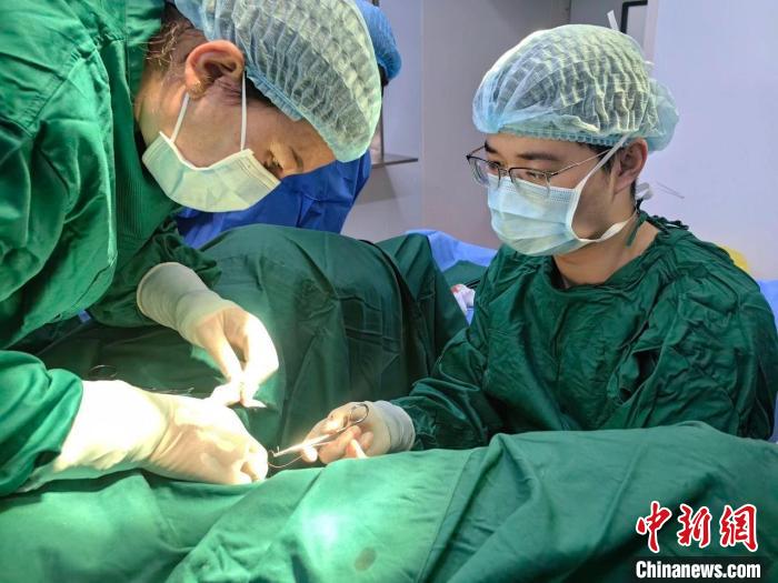 程偉業(yè)(右)進(jìn)行外科手術(shù)中。浙江省人民醫(yī)院供圖