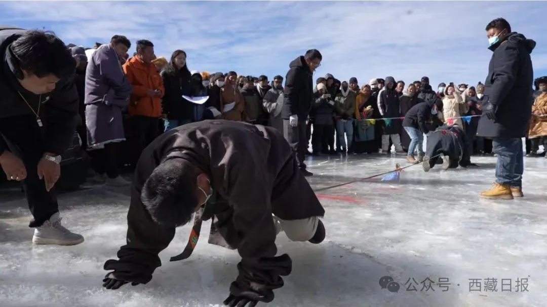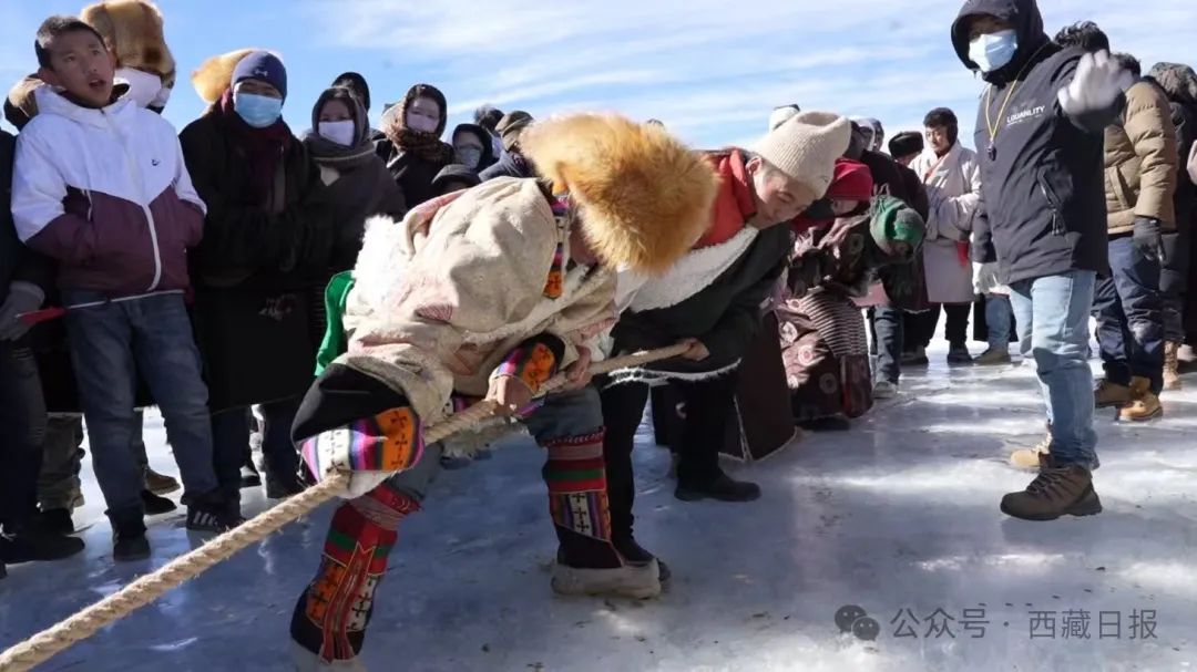 賽場上,傳統(tǒng)冰上項目亮點(diǎn)紛呈。牛嘎滑冰車(個人)賽中,選手身輕如燕,技巧嫻熟,在冰面上風(fēng)馳電掣;木制滑冰車(個人)和親子賽同樣扣人心弦,無論是個人賽的奮勇爭先,還是親子賽的默契配合,都讓觀眾們目不暇接。自由滑冰賽里,大家展現(xiàn)著冰雪運(yùn)動的自由與奔放。團(tuán)隊項目更是將氣氛推向頂點(diǎn)。冰上拔河,大家腳蹬冰面、咬緊牙關(guān)、全力拉扯,每一寸繩子的移動都牽動著眾人的心。冰上接力賽中,選手交接棒時的默契配合、全力沖刺,傳遞著團(tuán)結(jié)與拼搏的力量。吶喊聲、歡呼聲交織在一起,在夯錯湖畔久久回蕩。