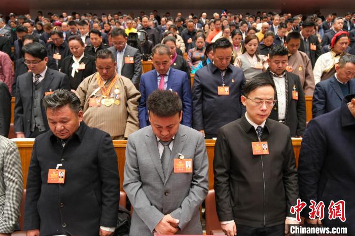 當(dāng)日開幕式上,西藏自治區(qū)人大代表和列席的政協(xié)委員集體為定日縣地震遇難同胞默哀。