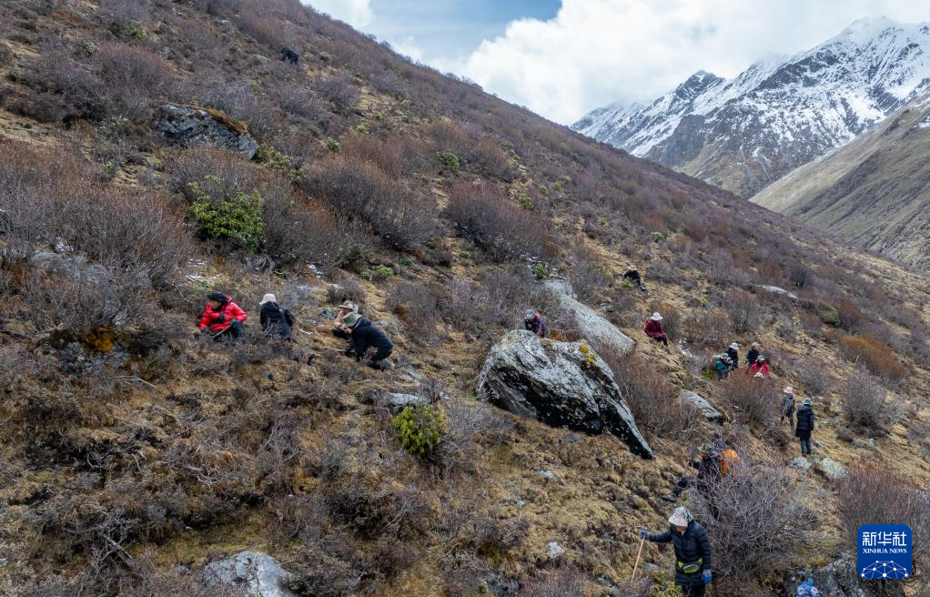 在那曲市索縣西昌鄉(xiāng),牧民在尋覓蟲(chóng)草(5月18日攝)。新華社記者 丁增尼達(dá) 攝